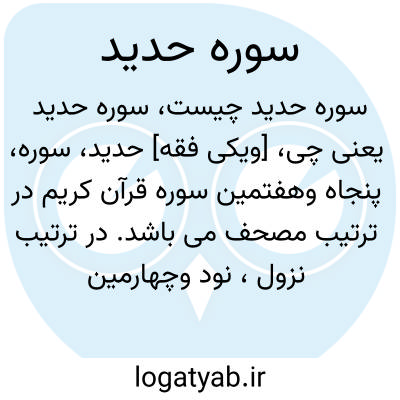 [ویکی شیعه] سوره حَدید پنجاه و هفتمین سوره قرآن به ترتیب کتابت و نود و چهارمین سوره به ترتیب نزول و از سوره های مدنی است. این سوره به دلیل آمدن کلمه “حدید ” در آیه ۲۵، حدید نام گرفته است. سوره حدید بعد از سوره إسراء، دومین سوره از سوره های هفتگانه مسبّحات است و از نظر حجم از گروه سوره های مفصلات به شمار می آید. موضوع اصلی این سوره تشویق به انفاق است و به موضوعاتی مانند توحید و صفات الهی نیز می پردازد. آیه قرض الحسنه (مَن ذَا الَّذِی یُقْرِ ضُ اللَّـهَ قَرْ ضًا حَسَنًا فَیُضَاعِفَهُ لَهُ وَلَهُ أَجْرٌ کَرِ یمٌ) ازجمله آیات مشهور این سوره به شمار می آید. در روایات، درک حضرت مهدی(ع) و نوشته شدن در گروه مؤمنان از خواص خواندن این سوره ذکر شده است.