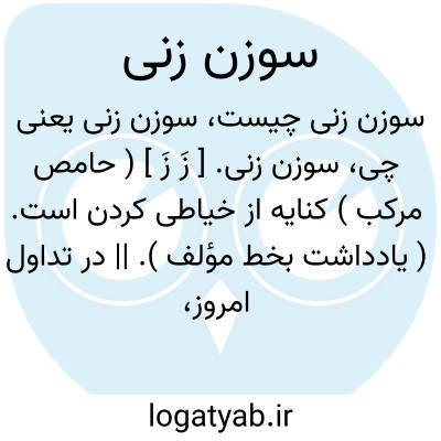 سوزن زنی. [ زَ زَ ] ( حامص مرکب ) کنایه از خیاطی کردن است. ( یادداشت بخط مؤلف ). || در تداول امروز، دارو را بوسیله ٔسرنگ به بیمار تزریق کردن. رجوع به سوزن زدن شود.
