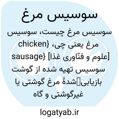 {chicken sausage} [علوم و فنّاوری غذا] سوسیس تهیه شده از گوشت بازیابیشدۀ مرغ گوشتی یا غیرگوشتی و گاه پوست و دیگر اجزای مرغ، مانند سنگدان و دل