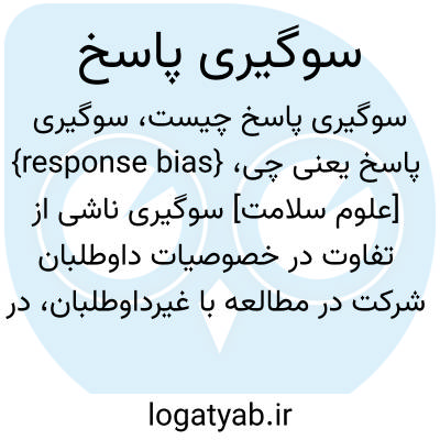 {response bias} [علوم سلامت] سوگیری ناشی از تفاوت در خصوصیات داوطلبان شرکت در مطالعه با غیرداوطلبان، در پاسخ دادن به پرسش ها