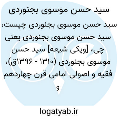 💡 میر سید حسن موسوی بجنوردی (۱۳۱٠ قمری – ۱۳۹۵ قمری) فقیه، اصولی و از مراجع عراق بوده‌است. دو فرزند او سید محمدکاظم و سید محمد موسوی بجنوردی مقام‌های سیاسی مهمی را پس از انقلاب ۱۳۵۷ به دست آوردند.