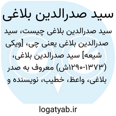 [ویکی شیعه] سید صدرالدین بلاغی، (۱۲۹۰-۱۳۷۳ش) معروف به صدر بلاغی، واعظ، خطیب، نویسنده و پژوهشگر شیعه قرن چهاردهم است. او در حسینیه ارشاد و دارالتبلیغ اسلامی به تدریس و خطابه مشغول بود. وی نماینده آیت الله بروجردی در نهضت ملی شدن صنعت نفت و نیز نماینده وی در انگلستان بود. صدر بلاغی از مؤسسان حزب جمهوری خلق مسلمان بود. او پس از مدتی همراه دیگر مؤسسان از ادامه فعالیت در حزب استعفا داد. قصص قرآن، برهان در قرآن، عدالت و قضا در اسلام از جمله آثار اوست. ترجمه صحیفه سجادیه و جاهلیت قرن بیستم محمد قطب از وی به جا مانده است.