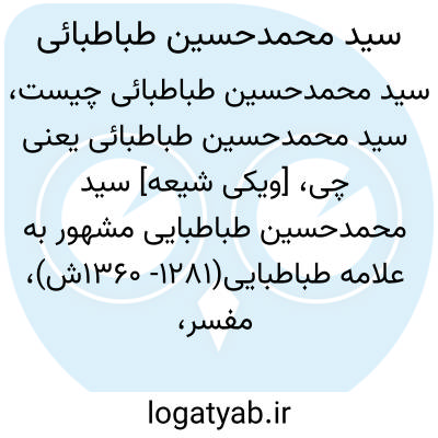 [ویکی شیعه] سید محمدحسین طباطبایی مشهور به علامه طباطبایی(۱۲۸۱- ۱۳۶۰ش)، مفسر، فلیسوف، اصولی، فقیه، عارف و اسلام شناس قرن ۱۴ق. وی از عالمان تأثیرگذار شیعه در فضای فکری و مذهبی ایران در قرن ۱۴ش بود. وی نویسنده تفسیر المیزان، و کتاب های فلسفی بدایة الحکمة و نهایة الحکمة، و اصول فلسفه و روش رئالیسم است.