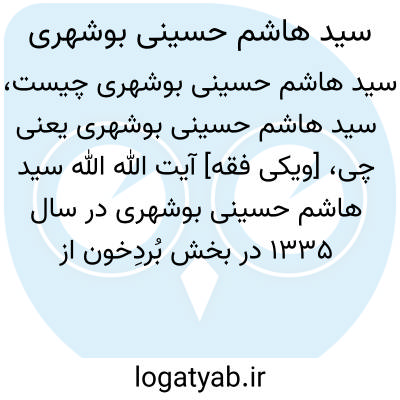 💡 سید هاشم حسینی بوشهری (زادهٔ ۱۳۳۵ در بردخون) روحانی و فقیه حوزه علمیه قم، نایب‌رئیس اول مجلس خبرگان رهبری، رئیس جامعه مدرسین حوزه علمیه قم، دبیر شورای عالی حوزه‌های علمیه، مدیر پیشین حوزه‌های علمیه سراسر کشور، امام جمعه موقت قم، عضو حوزوی دانشگاه علوم و معارف قرآن کریم و نماینده استان بوشهر در مجلس خبرگان رهبری است.
