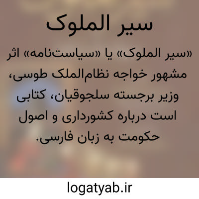 [ویکی فقه] سیر الملوک (کتاب). «سیر الملوک» یا «سیاست نامه» اثر وزیر مشهور و پرآوازه سلجوقی، خواجه نظام الملک طوسی است که تجارب خود را ب ه زبان فارسی در موضوع کشورداری مکتوب نموده است.