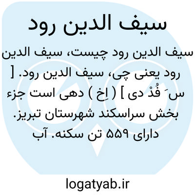 سیف الدین رود. [ س َ فُدْ دی ] ( اِخ ) دهی است جزء بخش سراسکند شهرستان تبریز. دارای 559 تن سکنه. آب آن از چشمه و رود تأمین می شود. محصول آنجا غلات و حبوبات است. ( از فرهنگ جغرافیائی ایران ج 4 ).