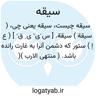 ( سیقة ) سیقة. [ س َی ْ ی ِ ق َ ] ( ع اِ ) ستور که دشمن آنرا به غارت رانده باشد. ( منتهی الارب )( آنندراج ) ( از اقرب الموارد ). || ستور و جزو آن که در پس آن صائد پنهان شود جهت قدرت یافتن بر صید. ( منتهی الارب ) ( آنندراج ) ( از اقرب الموارد ).