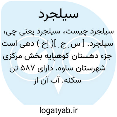 سیلجرد. [ س ِ ج ِ ]( اِخ ) دهی است جزء دهستان کوهپایه بخش مرکزی شهرستان ساوه. دارای 587 تن سکنه. آب آن از قنات. محصول آنجا غلات، بنشن، انار و انجیر می باشد. شغل اهالی زراعت و گله داری است. ( از فرهنگ جغرافیائی ایران ج 1 ).