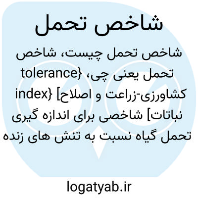 {tolerance index} [کشاورزی-زراعت و اصلاح نباتات] شاخصی برای اندازه گیری تحمل گیاه نسبت به تنش های زنده و غیرزنده