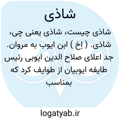 شاذی. ( اِخ ) ابن ایوب به مروان. جد اعلای صلاح الدین ایوبی رئیس طایفه ایوبیان از طوایف کرد که بمناسب مقاتله با عیسویان و مدافعه از عالم اسلام شهرتی جهانگیر دارند. ( از کرد و پیوستگی نژادی و تاریخ او ص 195 ) و رجوع به طبقات سلاطین اسلام شجره مقابل ص 68 و ایوبیان و یوسف بن ایوب شاذی و صلاح الدین ایوبی شود.