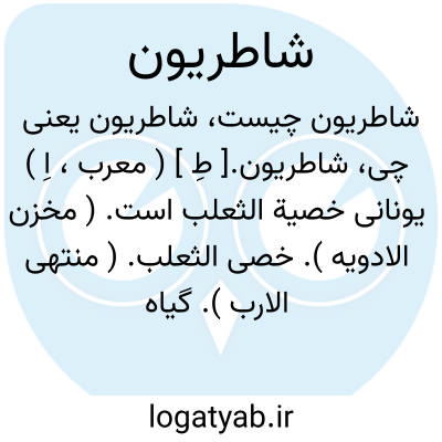 شاطریون.[ طِ ] ( معرب، اِ ) یونانی خصیة الثعلب است. ( مخزن الادویه ). خصی الثعلب. ( منتهی الارب ). گیاه ثعلب. گیاهی است از تیره ثعلب که بعضی از انواع آن دارای برگهایی شبیه برگهای زیتون است. رجوع به ساطریون و برهان قاطع، ذیل ساطریون شود.