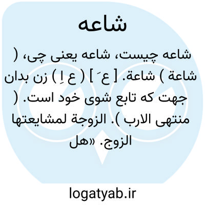 ( شاعة ) شاعة. [ ع َ ] ( ع اِ ) زن بدان جهت که تابع شوی خود است. ( منتهی الارب ). الزوجة لمشایعتها الزوج. «هل لک من شاعة»؛ ای زوجة. ( اقرب الموارد، ذیل ش ی ع ). || خبرهای پریشان. ( منتهی الارب ).