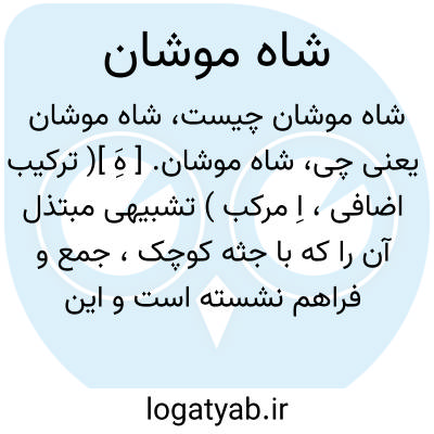 شاه موشان. [ هَِ ]( ترکیب اضافی، اِ مرکب ) تشبیهی مبتذل آن را که با جثه کوچک، جمع و فراهم نشسته است و این در تداول عامه مثل است: مثل شاه موشان نشسته. ( یادداشت مؤلف ).