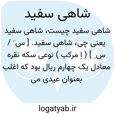 شاهی سفید. [ س َ / س ِ ] ( اِ مرکب ) نوعی سکه نقره معادل یک چهارم ریال بود که اغلب بعنوان عیدی می دادند و در شاباش بر سر عروس و داماد نثار میکرده اند.