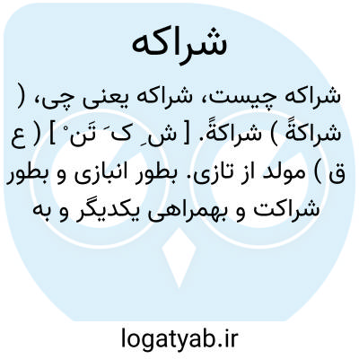 ( شراکةً ) شراکةً. [ ش ِ ک َ تَن ْ ] ( ع ق ) مولد از تازی. بطور انبازی و بطور شراکت و بهمراهی یکدیگر و به اتفاق هم. ( ناظم الاطباء ).