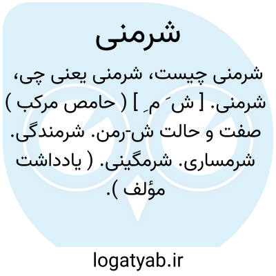 شرمنی. [ ش َ م ِ ] ( حامص مرکب ) صفت و حالت ش-رمن. شرمندگی. شرمساری. شرمگینی. ( یادداشت مؤلف ). رجوع به مترادفات کلمه شود.