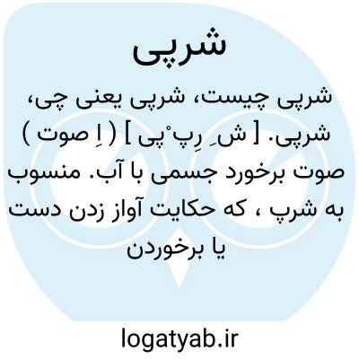 شرپی. [ ش ِ رِپ ْپی ] ( اِ صوت ) صوت برخورد جسمی با آب. منسوب به شرپ، که حکایت آواز زدن دست یا برخوردن دست به چیزی. برای نشان دادن صدا یا شدت افتادن چیزی ( مثلاً در درون آب ) بر زبان آید. ( فرهنگ لغات عامیانه جمال زاده ).