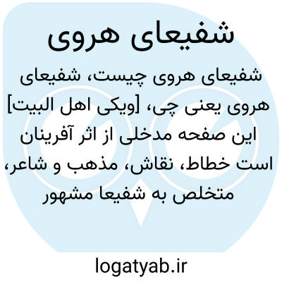💡 محمد شفیع هروی حسینی (۹۹۶-۱۰۸۱ه‍.ق/۱۵۸۷-۱۶۷۰م) معروف به شفیعا و ملقب به «پیشوا» از خوشنویسان خط شکسته نستعلیق در سده یازدهم هجری و از اهالی ریزه تایباد که به علت اقامت چندین ساله در هرات به شفیعای هروی مشهور گشت.