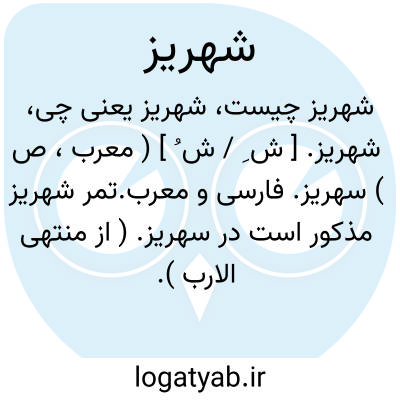 شهریز. [ ش ِ / ش ُ ] ( معرب، ص ) سهریز. فارسی و معرب.تمر شهریز مذکور است در سهریز. ( از منتهی الارب ). تمر سُهریز و بالنعت و بالاضافة، نوعی از خرما. ( منتهی الارب ). رجوع به سهریز و فهرست المعرب جوالیقی شود.