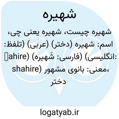 اسم: شهیره (دختر) (عربی) (تلفظ: šahire) (فارسی: شَهيره) (انگلیسی: shahire)
