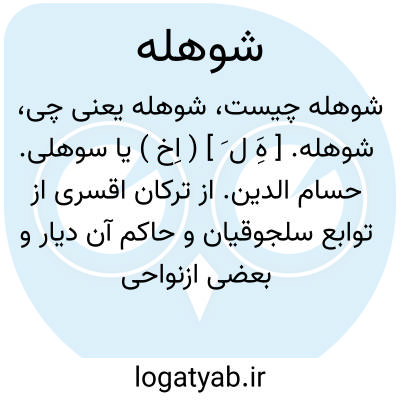 شوهله. [ هَِ ل َ ] ( اِخ ) یا سوهلی. حسام الدین. از ترکان اقسری از توابع سلجوقیان و حاکم آن دیار و بعضی ازنواحی خوزستان بوده است. ( از تاریخ گزیده ص 548 ).