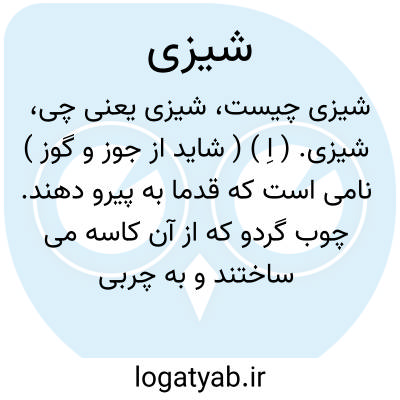 شیزی. ( اِ ) ( شاید از جوز و گوز ) نامی است که قدما به پیرو دهند. چوب گردو که از آن کاسه می ساختند و به چربی سیاه می کردند. ( یادداشت مؤلف ). رجوع به پیرو شود.