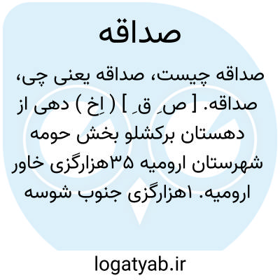 صداقه. [ ص ِ ق ِ ] ( اِخ ) دهی از دهستان برکشلو بخش حومه شهرستان ارومیه 35هزارگزی خاور ارومیه. 1هزارگزی جنوب شوسه گلمانخانه به ارومیه. جلگه. معتدل مالاریائی. سکنه 160 تن. آب از شهرچای و چشمه. محصول آن غلات و توتون و چغندر و حبوبات و انگور. شغل اهالی زراعت و صنایع دستی جوراب بافی. راه ارابه رو، تابستان میتوان اتومبیل برد. ( از فرهنگ جغرافیایی ایران ج 4 ).