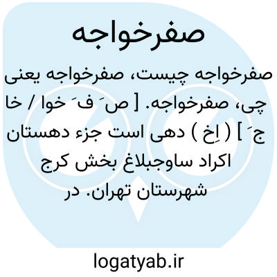 صفرخواجه. [ ص َ ف َ خوا / خا ج َ ] ( اِخ ) دهی است جزء دهستان اکراد ساوجبلاغ بخش کرج شهرستان تهران. در 61000 گزی باختر کرج، در 22000گزی جنوب راه شوسه کرج به قزوین. جلگه. معتدل. سکنه ٔآن 515 تن. آب آن از قنات و بهار از رود کران. محصول آنجا غلات، بنشن، صیفی، چغندر قند، باغات انگور. شغل اهالی زراعت، گله داری و راه مالرو دارد. از طریق احمدآباد ماشین میرود. ( فرهنگ جغرافیائی ایران ج 1 ).