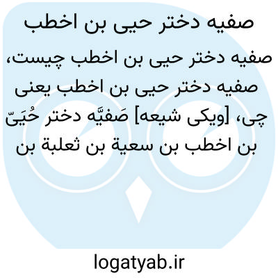 [ویکی شیعه] صَفیَّه دختر حُیَیّ بن اخطب بن سعیة بن ثعلبة بن عبید(درگذشته ۵۰ق). صفیه پیش از اسلام آوردن، دو بار ازدواج کرده بود، او در جنگ خیبر پس از کشته شدن همسرش، به اسارت مسلمانان درآمد، پیامبر او را به همسری برگزید. منابع تاریخی او را ستوده و گزارشهایی از رنجش وی از برخی همسران پیامبر نقل کرده اند.