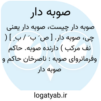 صوبه دار. [ ص َ ب َ / ب ِ ] ( نف مرکب ) دارنده صوبه. حاکم وفرمانروای صوبه: ناصرخان حاکم و صوبه دار آن مملکت روانه جلال آباد و از آنجا به پیشاور... آمد. ( مجمل التواریخ گلستانه ص 77 ). رجوع به صوبه شود.