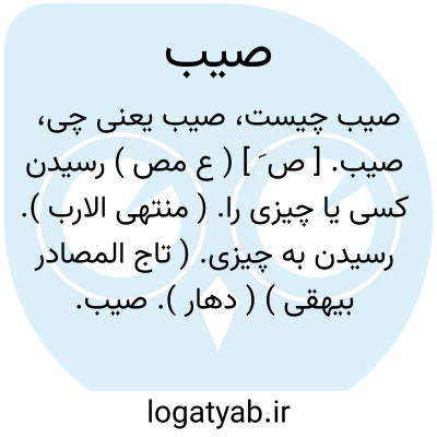 صیب. [ ص َ ] ( ع مص ) رسیدن کسی یا چیزی را. ( منتهی الارب ). رسیدن به چیزی. ( تاج المصادر بیهقی ) ( دهار ).