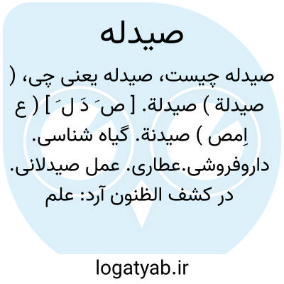 ( صیدلة ) صیدلة. [ ص َ دَ ل َ ] ( ع اِمص ) صیدنة. گیاه شناسی. داروفروشی.عطاری. عمل صیدلانی. در کشف الظنون آرد: علم صیدله از فروع طب است و در تمییز متشابهات از اشکال رستنیهابحث کند که چینی است یا هندی است یا رومی و از شناختن زمان آن که تابستانی است یا پائیزی و از تمیز نیک آن از بد، و همچنین از خواص و غرض و فائده آن و فرق بین علم صیدله و علم نباتات آن است که علم صیدله اصالت از تمییز احوال رستنیها بحث کند و علم نباتات از خواص آن و نخستین به عمل سازگارتر است و دوم به علم. || ( مص ) دارو فروختن. ( اقرب الموارد ).