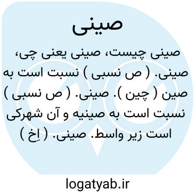 منسوب به صین ( چین ) ۱ - از مردم چین چینی. ۲ - ساخته محصول چین: اترج صینی. ۳ - ظرف چینی. ۴ - سینی: خاتون آن خواجه صینیی عالی پر حلوا حضرت خداوندگار فرستاد.
