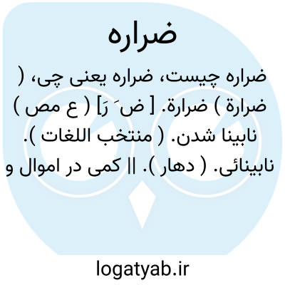 ( ضرارة ) ضرارة. [ ض َ رَ] ( ع مص ) نابینا شدن. ( منتخب اللغات ). نابینائی. ( دهار ). || کمی در اموال و ذوات. ( منتهی الارب ). || گزند رسانیدن. ( غیاث ) ( آنندراج ).