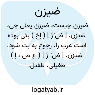 ضیزن. [ ض َ زَ ] ( ع ص، اِ ) طفیلی. طفیل. ( مهذب الاسماء ). || نگاهبان معتمد. ( منتهی الارب ) ( منتخب اللغات ). || فرزندان مرد و عیال و انبازان او. ( منتهی الارب ). اولاد و عیال مرد و شریکان او. ( منتخب اللغات ). || آب ده چالاک. ( منتهی الارب ). || بازرگانی که متاع را نگاه دارد تا گران فروشد. ( منتهی الارب ). محتکر. || مس و مانند آن که میان سوراخ بکره یا تیر بکره باشد. ( منتهی الارب ). چوبی که بکره را بگیرد. چوبی که سوراخ بکره را تنگ کند اگر فراخ گردد. || فرزندکه مزاحم پدر خود باشد درباره زن وی. ( منتهی الارب ). آنکه پدر را مزاحمت رساند و با زن پدر یکی باشد. ( منتخب اللغات ). || آنکه بر سر چاه زحمت دهد و انبوهی کند. ( منتهی الارب ). آنکه بر سر چاه هنگام آب خوردن زحمت دهد و انبوهی کند. ( منتخب اللغات ).