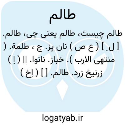 لغت نامه دهخدا طالم. [ ل ِ ] ( ع ص ) نان پز. ج، طلمة. ( منتهی الارب ). خباز. نانوا. || ( اِ ) زرنیخ زرد.طالم. [ ] ( اِخ ) نام شهری است که در جنوب اراضی یهودا در میانه زیف و بعلوت واقع بود. ( یوشع 15، 24 ) ( قاموس مقدس ).