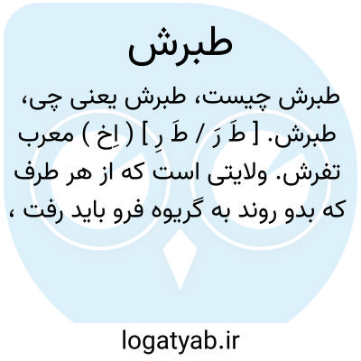 طبرش. [ طَ رَ / طَ رِ ] ( اِخ ) معرب تفرش. ولایتی است که از هر طرف که بدو روند به گریوه فرو باید رفت، سیزده پاره ده است، خم «ظ: فم یا فیم »و طرخوران از معظمات اوست، هوایش معتدل است، آبش ازچشمه ها و کاریز که از آن کوهها برمیخیزد و ارتفاعاتش پنبه و غله و میوه بود، اکثر اوقات آنجا ارزانی بود، و مردم آنجا شیعی اثناعشری اند. حقوق دیوانیش شش هزار دینار است. ( نزهةالقلوب چ لندن ص 68 ). تفرش در فرورفتگی واقع شده و کوههائی آنرا احاطه کرده است، و اغلب اهالی تفرش باسواد، و در دوره های اخیر غالباً مصدر مشاغل مهم دولتی و مملکتی بوده اند. ( جغرافیای سیاسی کیهان ص 388 ). رستاق طبرش؛ روایتی است از ابن المقفع که ضیعتهای آنرا طبرش بن همدان بنا کرده است و بعمارت آن فرموده. ( تاریخ قم ص 78 ). رستاق طبرش؛ سی ودو دیه، از آن جمله طرخران، فیم، جادیده، که مندرس گشته و ناپدید شده است. ( تاریخ قم ص 56 ). رجوع به همان کتاب ص 117 شود. و عوانان بددین از قم و کاشان و آبه و طبرش و ری: