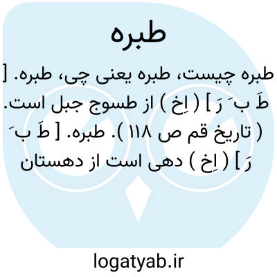 طبره. [ طَ ب َ رَ ] ( اِخ ) از طسوج جبل است. ( تاریخ قم ص 118 ).