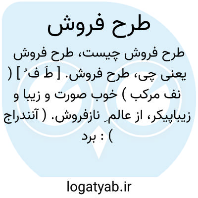 طرح فروش. [ طَ ف ُ ] ( نف مرکب ) خوب صورت و زیبا و زیباپیکر، از عالم ِ نازفروش. ( آنندراج ):