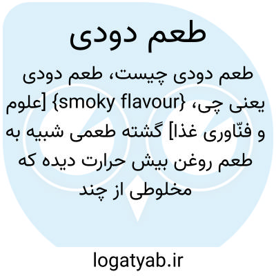 {smoky flavour} [علوم و فنّاوری غذا] گشته طعمی شبیه به طعم روغن بیش حرارت دیده که مخلوطی از چند طعم است