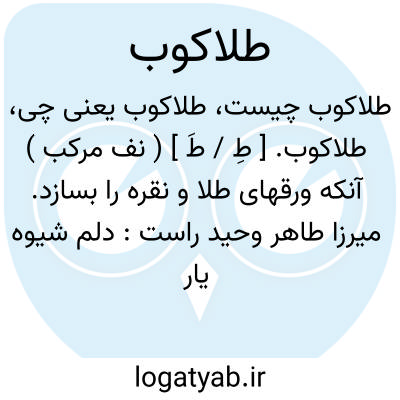 طلاکوب. [ طِ / طَ ] ( نف مرکب ) آنکه ورقهای طلا و نقره را بسازد. میرزا طاهر وحید راست: