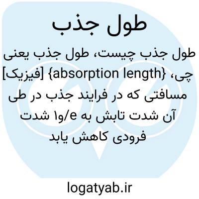 {absorption length} [فیزیک] مسافتی که در فرایند جذب در طی آن شدت تابش به e/و1 شدت فرودی کاهش یابد