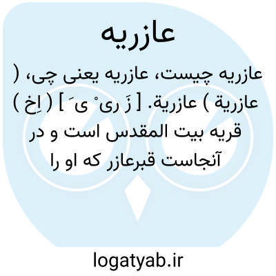 ( عازریة ) عازریة. [ زَ ری ْ ی َ ] ( اِخ ) قریه بیت المقدس است و در آنجاست قبرعازر که او را عیسی علیه السلام زنده کرد. ( معجم البلدان ج 6 ص 95 ).