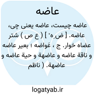عاضه. [ ض ِه ْ ] ( ع ص ) شتر عضاه خوار. ج، عَواضه؛ بعیر عاضه و ناقة عاضه و عاضهة و حیة عاضه و عاضهة. ( ناظم الاطباء ) ( منتهی الارب ) ( اقرب الموارد ). || مار که گزیده اش در حال بمیرد.( منتهی الارب ) ( آنندراج ) ( اقرب الموارد ). || جادوگر. ( منتهی الارب ) ( آنندراج ) ( ناظم الاطباء ).
