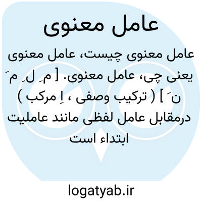 عامل معنوی. [ م ِ ل ِ م َ ن َ ] ( ترکیب وصفی، اِ مرکب ) درمقابل عامل لفظی مانند عاملیت ابتداء است در خبر که همان مجرد بودن از عوامل لفظی است. ( از تعریفات ).