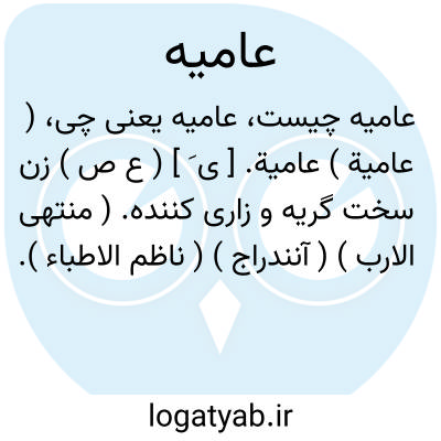 ( عامیة ) عامیة. [ ی َ ] ( ع ص ) زن سخت گریه و زاری کننده. ( منتهی الارب ) ( آنندراج ) ( ناظم الاطباء ).