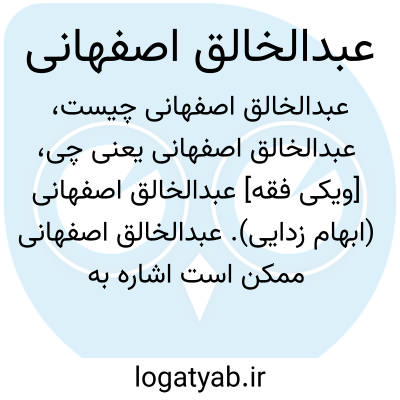 [ویکی فقه] عبدالخالق اصفهانی (ابهام زدایی). عبدالخالق اصفهانی ممکن است اشاره به اشخاص و شخصیت های ذیل باشد: • عبدالخالق قائنی اصفهانی، از فضلاء قرن یازدهم هجری در اصفهان• عبدالخالق لنجانی اصفهانی، از خوشنویسان نسخ و ثلث در قرن چهاردهم هجری در اصفهان• ابوهاشم عبدالخالق علوی اصفهانی، از محدّثین اصفهان در قرن پنجم هجری• عبدالخالق اژه ای اصفهانی، از خطاطین خط نستعلیق در قرن سیزدهم هجری در اصفهان• عبدالخالق اژه ای اصفهانی، از خطاطین خط نستعلیق در قرن سیزدهم هجری در اصفهان• عبدالخالق خان اصفهانی، از هنرمندان اصفهان و از پیشگامان صنعت عکاسی در اواخر دوره قاجاریه
