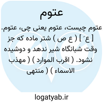 عتوم. [ ع َ ] ( ع ص ) شتر ماده که جز وقت شبانگاه شیر ندهد و دوشیده نشود. ( اقرب الموارد ) ( مهذب الاسماء ) ( منتهی الارب ).