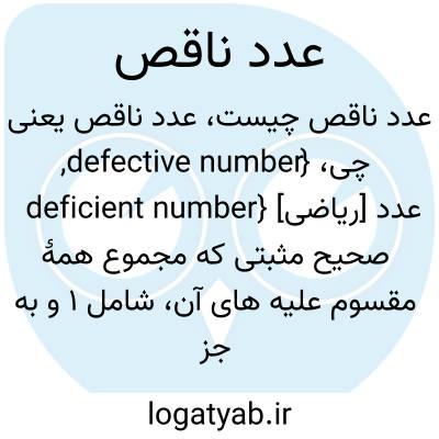 {defective number, deficient number} [ریاضی] عدد صحیح مثبتی که مجموع همۀ مقسوم علیه های آن، شامل 1 و به جز خودش، از خودش کمتر شود