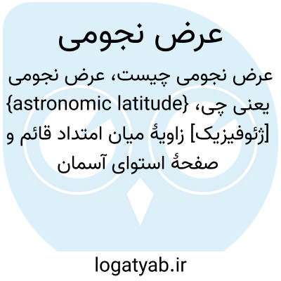 {astronomic latitude} [ژئوفیزیک] زاویۀ میان امتداد قائم و صفحۀ استوای آسمان